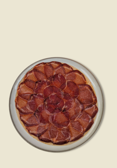 Jamón ibérico de bellota: vepřové maso z iberského prasete z volného výběhu dubového háje, mořská sůl.